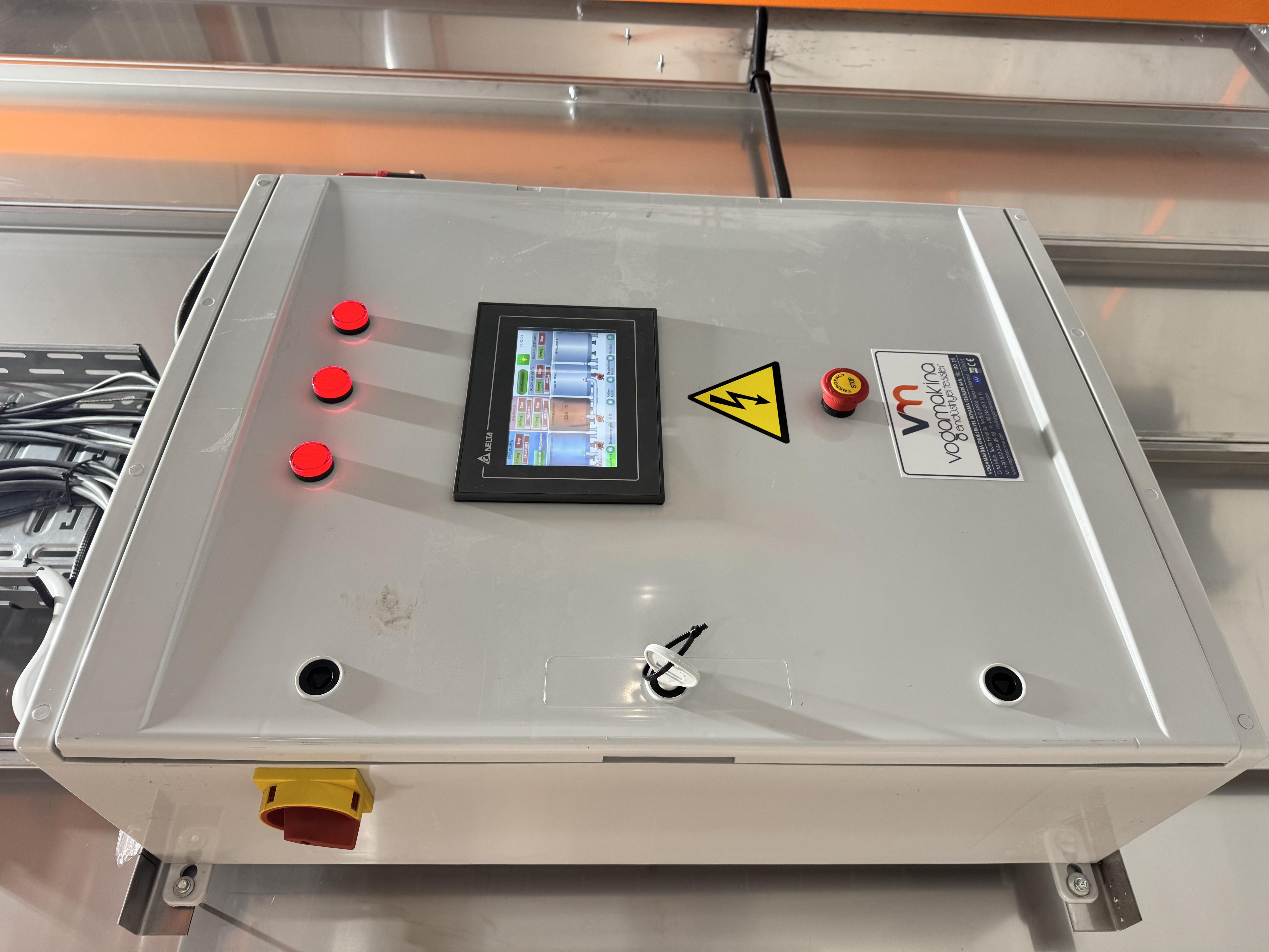 Continuous automatic powder coating line for electrical enclosures