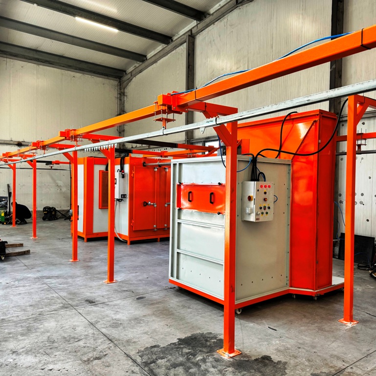 Transfer type manual powder coating line Chemical pretreatment cabinet, manual powder coating booth, polymerization oven and conveyor system